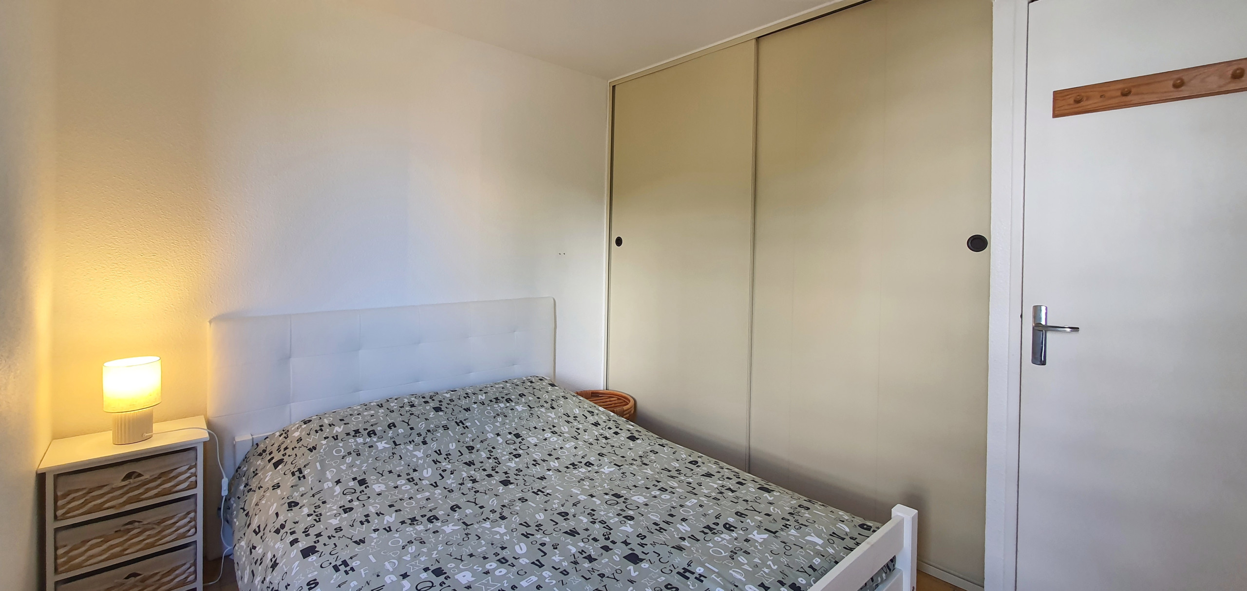 Une chambre cocooning avec un lit double (140 x190) et un placard.