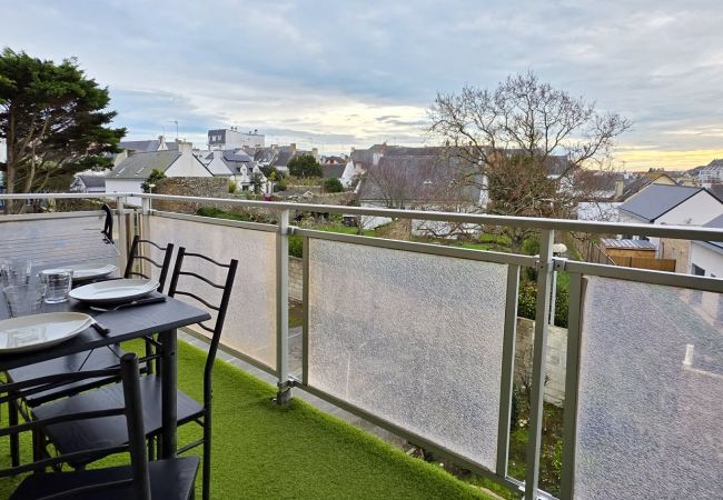 Studio à Quiberon proche plage avec terrasse, piscine et parking privatif, idéal pour des vacances au calme en bord de mer.